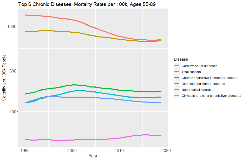No dramatic shifts in chronic disease mortality curves have emerged since 2022